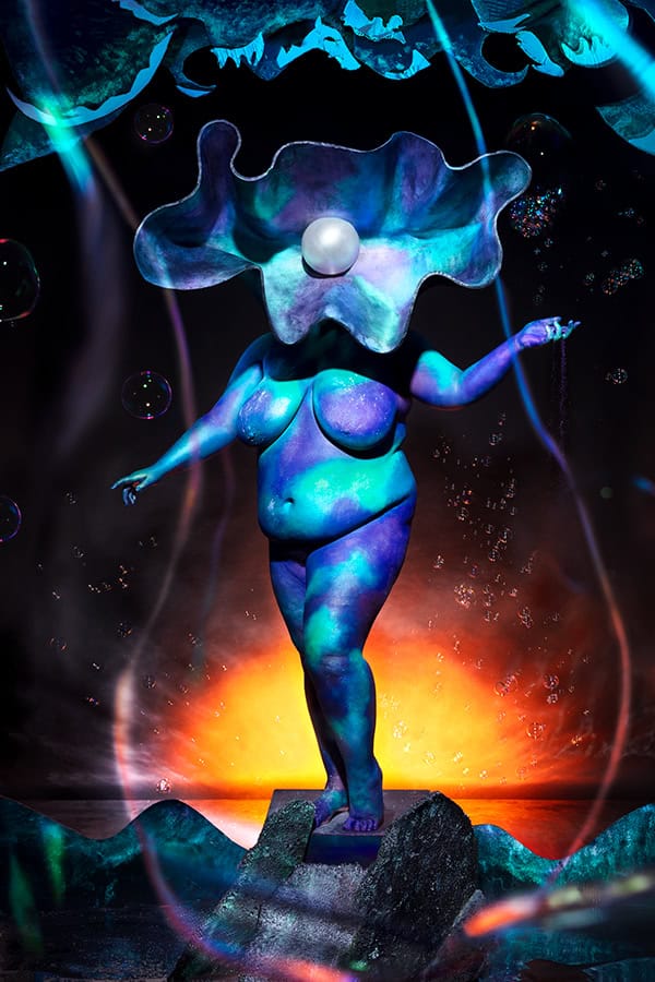 The first image shifts focus to a human subject, encapsulating the idea that humanity itself is not immune to the consequences of environmental degradation. Together, these images form a poignant juxtaposition, highlighting the interconnectedness of all life and the shared vulnerability of species on our planet. The second is a still life, capturing the delicate remains of an extinct species, or the growing of a new species preserved in a vacuum-sealed bag.